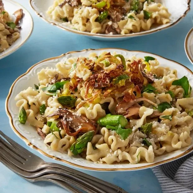 Mafaldine pasta also goes by other names like mafalda and reginette. While many pasta names directly reference the noodle’s form, the story goes that mafaldine—with its wide ribbon shape and wavy sides—was named after Princess Mafalda of Savoy and her curly hair. Found in long and short varieties, mafaldine shines in a variety of sauces from tomato-based ones to light cream sauces.